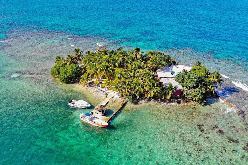 Palm trees and conch shells cover the island, which only spans an acre and a half. There is no cell service or running water.