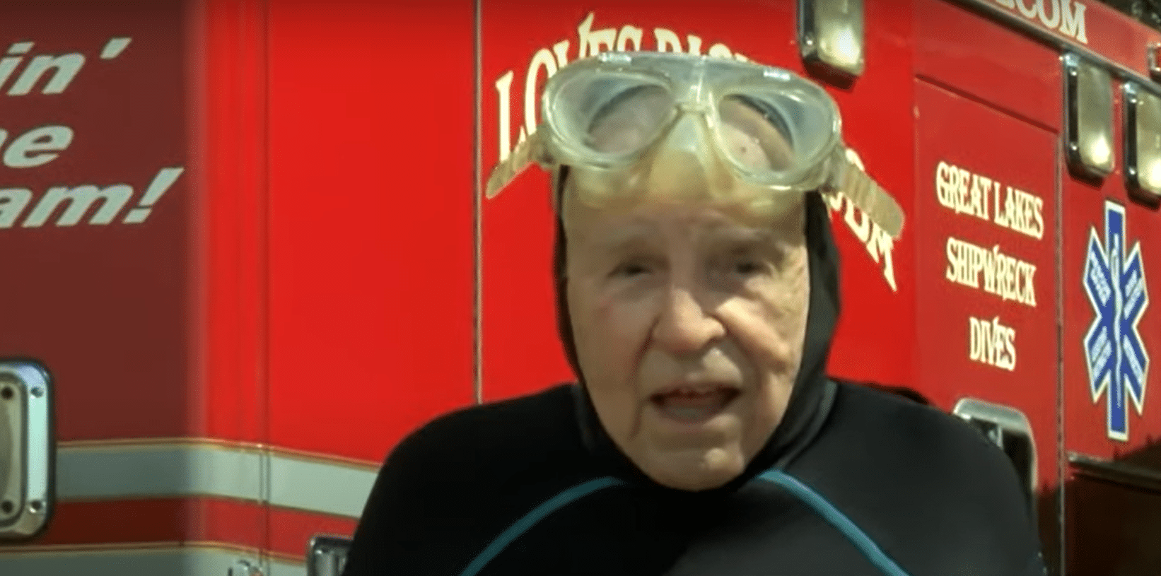 The 100-year-old claimed the record after completing a 27-minute dive to a depth of 40ft/12m, at a local lake in the US state of Illinois.