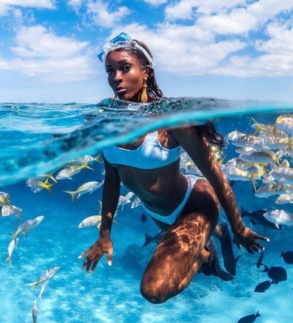 #scuba Young black woman snorkeling in the ocean wearing goggles, fins, a white two-piece bathing suit, surrounded by exotic fish – WFMZ Allentown